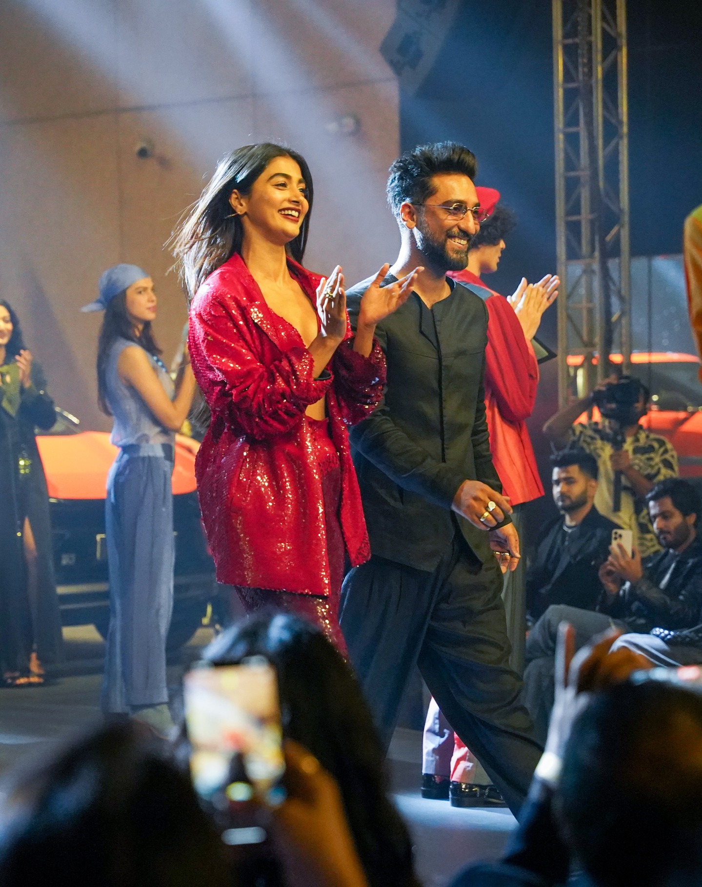 makeup and impeccably styled hair, adding just the right amount of drama without overpowering the outfit. Her presence on the ramp was not just a visual treat but also a statement of how tech-inspired
