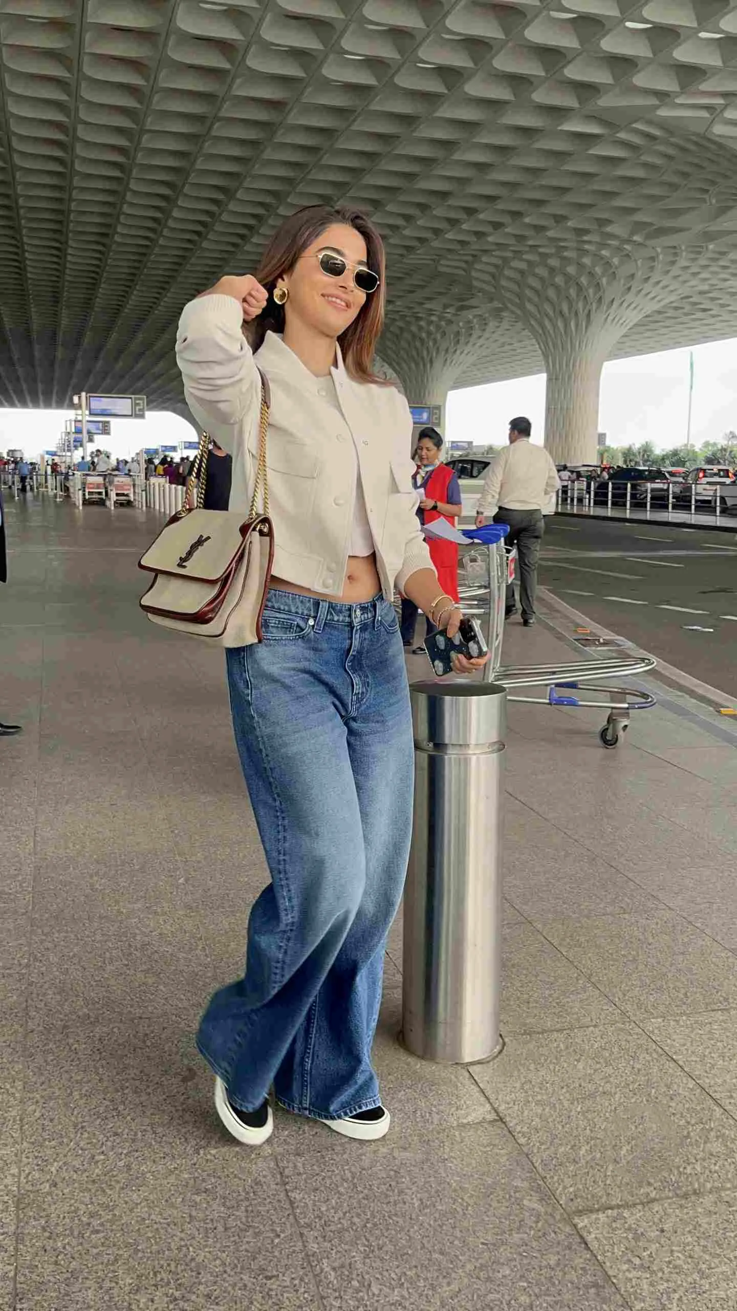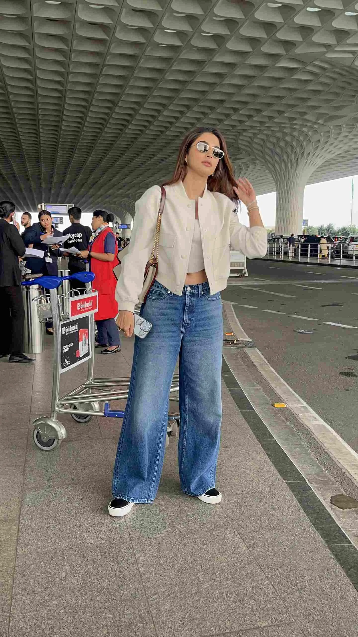 Her ensemble, paired with high-waisted denim and minimal accessories, struck the perfect balance between travel-friendly and fashion-forward, making her one of the most stylish celebrities to grace the