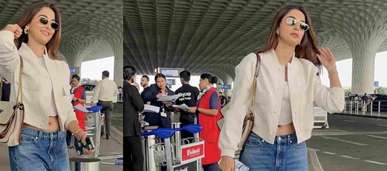 airport, effortlessly combining comfort with sizzling style. Dressed in a sleek crop top that revealed her toned midriff and accentuated her navel, she exuded a casual yet confident charm that instantly caught the attention of everyone around.