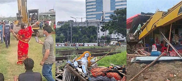 Two days after a sizable crowd threatened to demolish it, the government of Bangladesh's capital, Dhaka, destroyed a Durga Mandir. According to sources, Md. Nasir Uddin Mahmud, Divisional Estate Officer and Deputy Commissioner of bangladesh Railway's Dhaka Division, ordered the demolition of the Khilkhet Sarbajanin Durga Mandir on Wednesday.