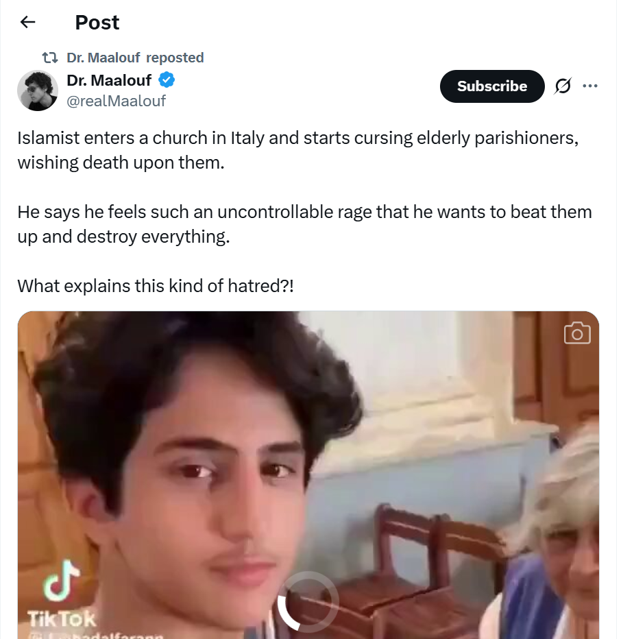 italy and spewing hatred toward elderly worshippers reflect a disturbing manifestation of deep-seated ideological radicalization, not representative of the broader Muslim population. When someone behaves in this way—cursing the elderly, threatening violence, and expressing a desire to destroy sacred spaces—it often stems from a toxic mix of extremist indoctrination, personal frustration, and a warped worldview that dehumanizes others based on religious or cultural differences. Radical ideologies teach such individuals to see