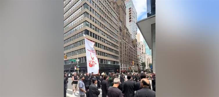 The nature of the event is not explicitly stated in the video or the tweet, but given the attire and flags, it is likely related to a Shia Muslim observance, possibly Ashura, a day of mourning for the martyrdom of Hussein ibn Ali, a significant figure in Shia Islam. Ashura is marked by processions, recitations, and expressions of grief, often involving large gatherings in public spaces.