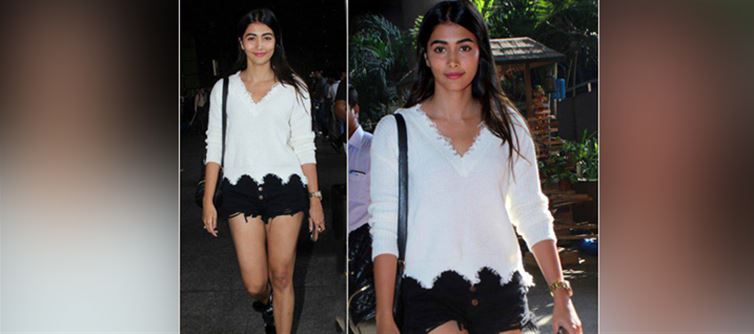 pooja hegde turned heads with her effortlessly chic casual look, as captured in a series of photographs that have surfaced online. The images, showcasing the 34-year-old star, depict her navigating a public space with a blend of comfort and style, offering fans a glimpse into her off-screen persona. Dressed in a white knit sweater paired with distressed black shorts, Hegde’s outfit reflects a perfect balance of trendy and relaxed