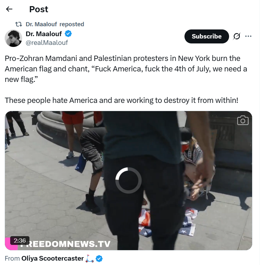 A recent protest in New York led by pro-Palestinian activists and supporters of Zohran Mamdani has sparked significant controversy after demonstrators were seen burning the American flag and chanting provocative slogans such as “F*** America, f*** the 4th of July, we need a new flag.” The display, which occurred on a day many Americans consider sacred, was seen by many as not just anti-establishment, but openly hostile to national identity and values. While freedom of expression is constitutionally protected, the manner and timing of such protests can deeply offend those who