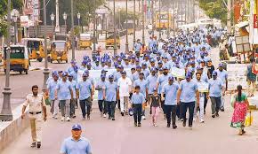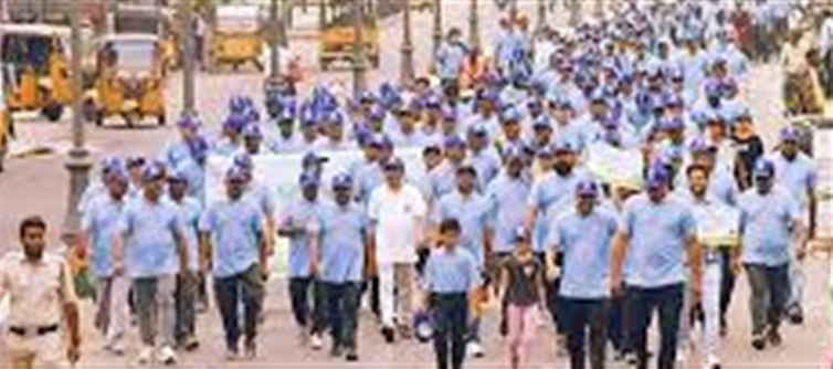 Rajamahendravaram:�aspart of the ongoing swachhata pakhwada marketing campaign, ongc rajahmundry asset organised a walkathon from kambalacheruvu junction to pushkar ghat on friday to raise focus approximately cleanliness and waste segregation.