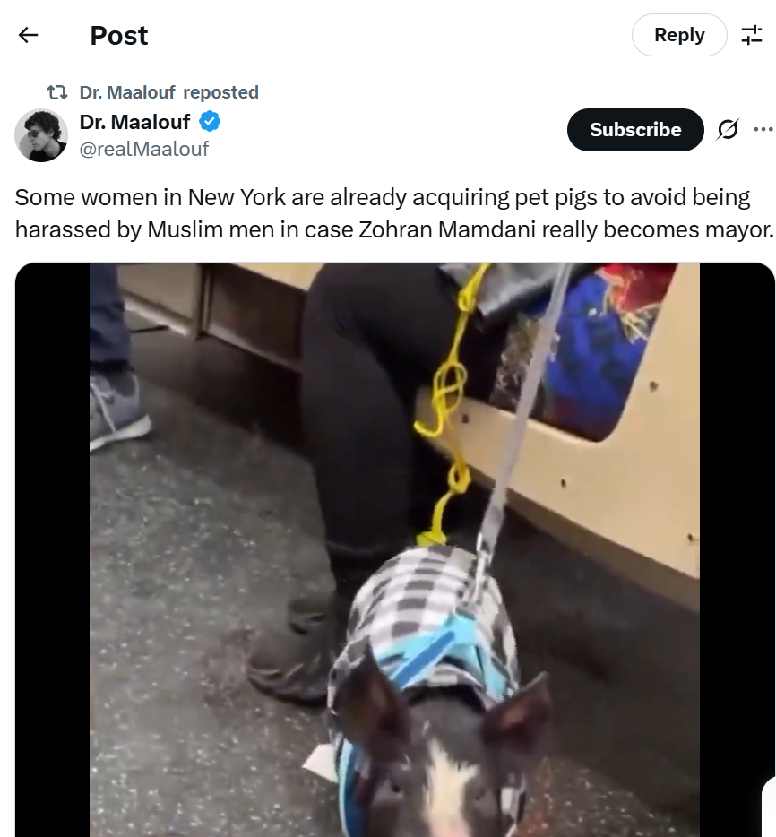 The X thread reveals a polarized response. Some users, like The Immortal, draw parallels to France, suggesting a pattern of concern over Muslim immigration and its impact on public safety. Others, such as KoiNioꓘ, make light of the situation, comparing pigs favorably to humans in terms of cleanliness. The discussion extends to political commentary, with users like Ad-Hoc and Himanshu Singh offering satirical or critical takes on the implications of Mamdani’s potential mayoralty. The thread also includes references to