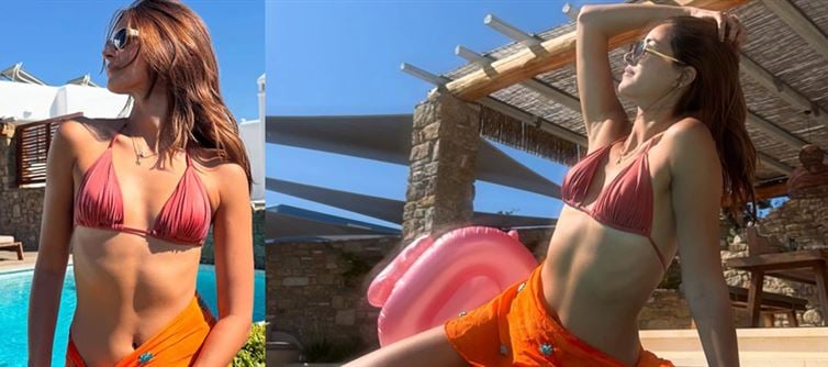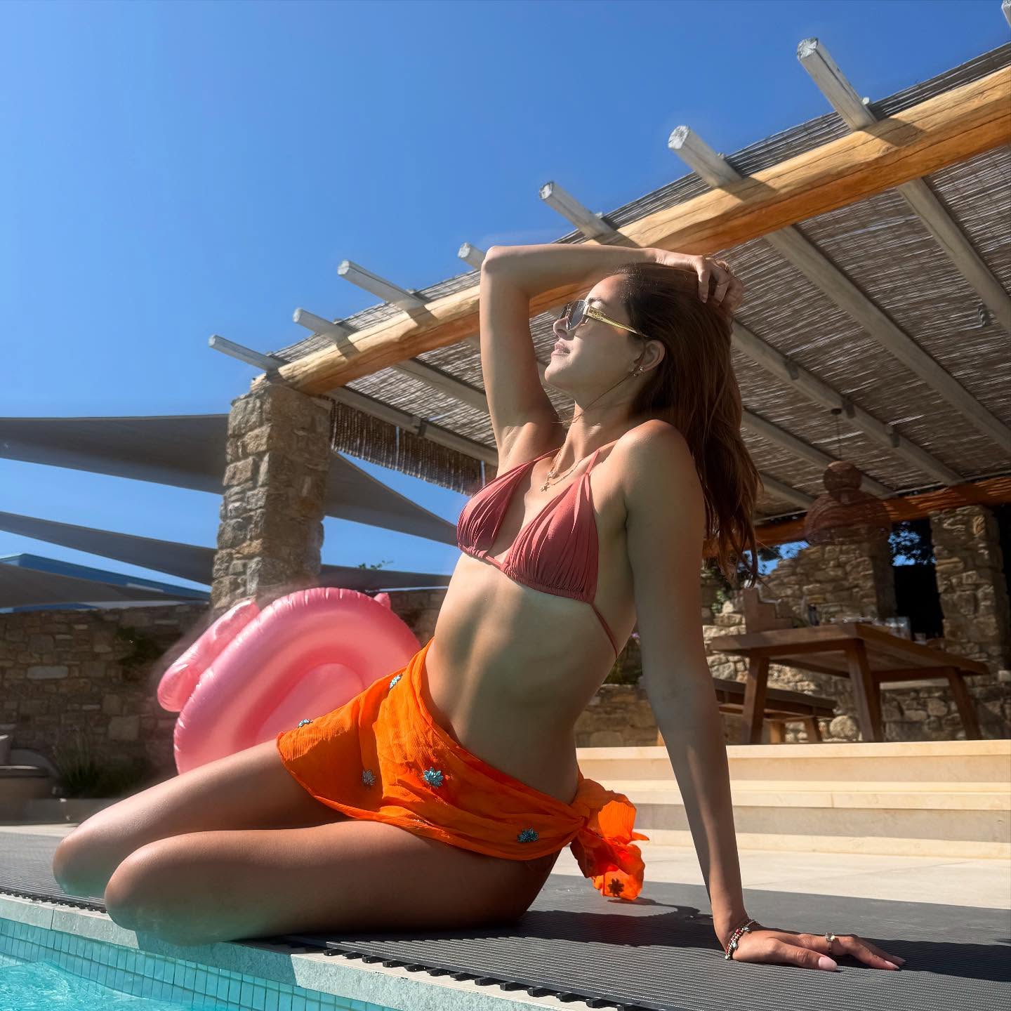 social media ablaze with her latest bikini-clad vacation photos from Mykonos, Greece. The young