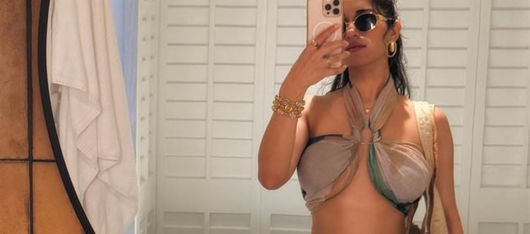 Ruhani Sharma’s latest photo series captures her in a refreshing light, blending effortless style with an authentic, carefree energy. Clad in a flowing green maxi skirt paired with a pastel scarf top tied loosely at the back, Ruhani exudes both grace and grounded charm.
