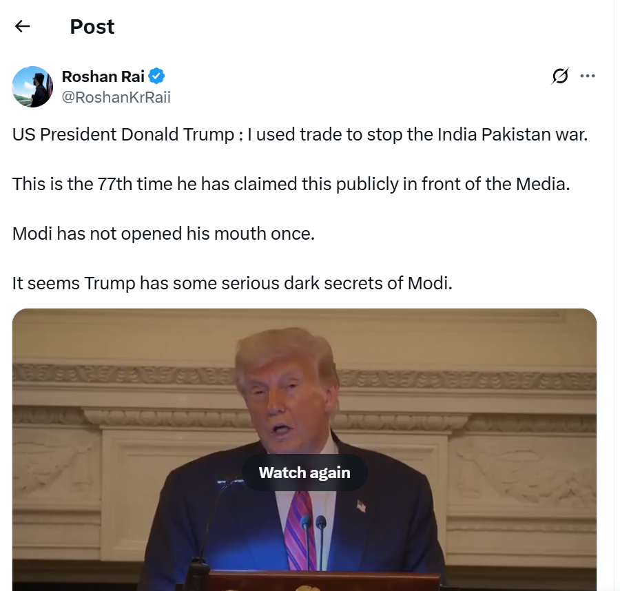 social media has erupted with memes and sarcastic posts, poking fun at Trump’s apparent obsession with inserting himself into Indo-Pak affairs and mockingly questioning why Modi hasn’t validated his claims if they were indeed true. Some users have even dubbed it “Trump’s favorite bedtime story.”