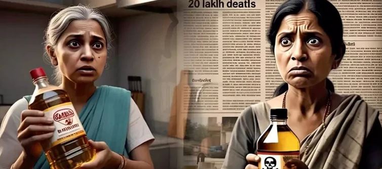 DNA damage, RNA destruction, heart attack, heart blockage, brain damage, paralysis, blood pressure, sugar, impotence, cancer, bone weakness, joint pain, back pain, kidney damage, liver damage, cholesterol, cataracts, leukorrhea, infertility, piles, skin problems, and more are all caused by refined oil.