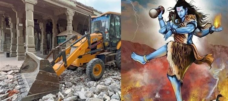 There was a sizable throng present to observe this occurrence. The individuals in the temple appeared to be very content, yet at the same time, the JCB was continuing to demolish the grounds. However, everyone fell silent when the JCB advanced to destroy the temple's main spire. This caught several people off guard.