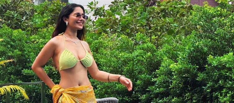 Ruhani Sharma has once again taken the internet by storm with her sizzling new vacation photos that effortlessly blend sensuality with style. This time, she stuns in a buttery yellow bikini top, styled with sheer wraps and sultry thigh-high slits that leave little to the imagination. The ensemble not only flatters her flawless frame but also radiates confidence and bold femininity. It’s clear Ruhani isn’t just serving looks—she’s making a statement about self-assurance, body positivity, and the art of effortless allure.