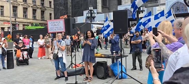 The video, which includes subtitles of the woman's speech, highlights the protesters' demand for a clear law prohibiting Islamist prayers in public spaces. She emphatically states, "The streets of Montreal are not mosques on a flat surface!" and calls upon the Quebec government to protect the secular nature of common areas. The crowd's response, marked by applause and raised flags, reflects a broader sentiment of concern about the encroachment of religious activities into secular domains. This protest is part of a larger discourse on the balance between religious freedom and the preservation of public spaces as neutral grounds, a debate that resonates deeply within the diverse fabric of Canadian society.