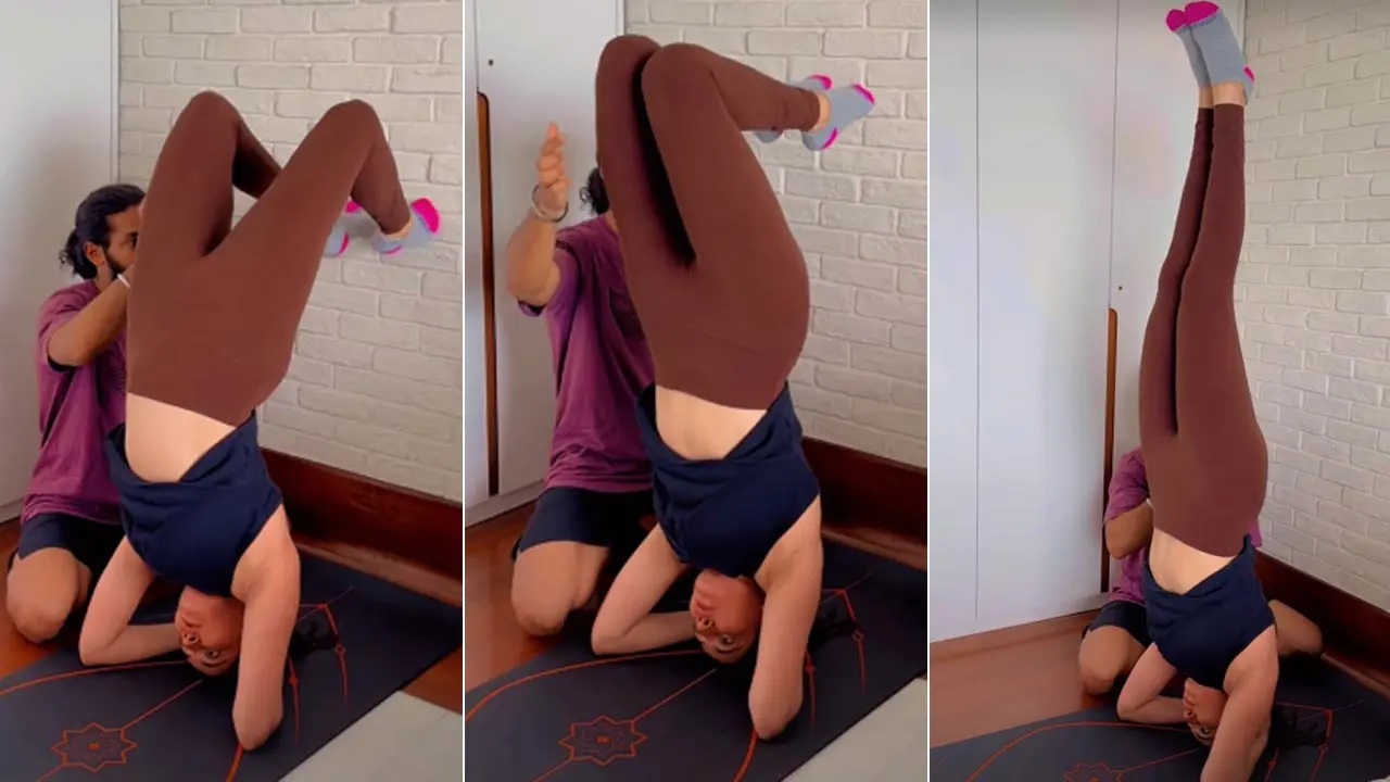 Kajal Aggarwal, an actress, posted a video of herself doing out on social media. She emphasizes the value of self-care when juggling