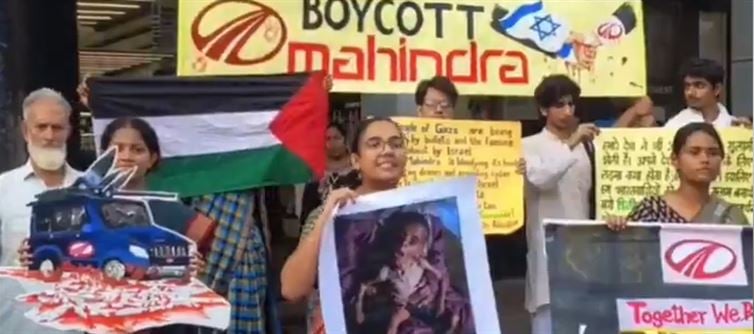 The protestors' grievances are rooted in their belief that mahindra, through its various companies, provides drones, vehicles, and cybersecurity facilities to the Israeli military, thereby enabling the conflict. They demand that the indian government sever all diplomatic ties with israel and call for a broader boycott of mahindra products as part of the BDS (Boycott, Divestment, and Sanctions) movement. The video includes subtitles and images that reinforce its narrative, such as a photograph of a distressed child and text overlays stating, "The genocide committed by Zionist israel since the last 1.5 years is being funded by the mahindra Group along with its companies." This public display of dissent aims to pressure mahindra and the indian government to reconsider their stance on the Israel-Palestine issue.