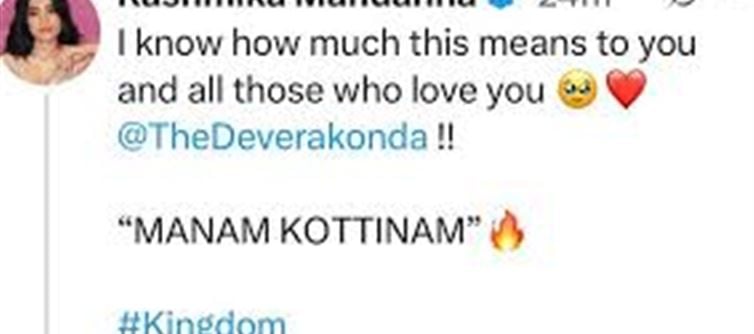 The special bond between the two has once again been revealed through this tweet. The fact that this couple, who gave hits as a combo in geetha govindam and Dear Comrade, occasionally connect in public like this is becoming a hot topic among fans. As soon as rashmika tweeted, it received lakhs of likes, thousands of shares, and comments. The word ‘Manam kottinam..’ is also trending. There is talk that vijay deverakonda has given the best performance of his career in this film. Although the film, which has raised expectations with the trailer and songs, has received mixed reviews from social media, Vijay and Rashmika's twitter conversation has given a special boost to the film's promotion. Now, the first day collections are expected to be Rs. 17-19 crores, and there are strong talks that it has the potential to set records by crossing the million-dollar mark in North America.