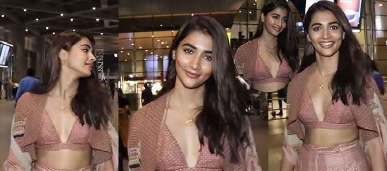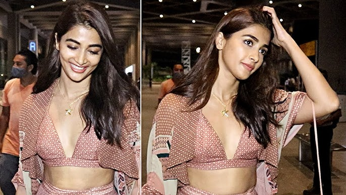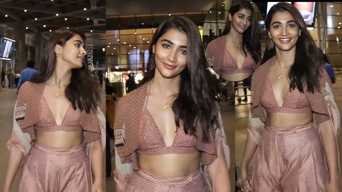 pooja hegde was recently spotted at the airport, turning heads with her effortlessly chic and stylish look. The actress opted for a coordinated set in a muted, dusty rose hue, featuring a deep V-neck cropped blouse paired with matching high-waisted trousers. The outfit struck the perfect balance between comfort and glamour, making it ideal for travel while still exuding star power. Her choice of lightweight, breathable fabric and loose silhouette reflected a relaxed yet fashionable vibe, perfect for a busy airport appearance.