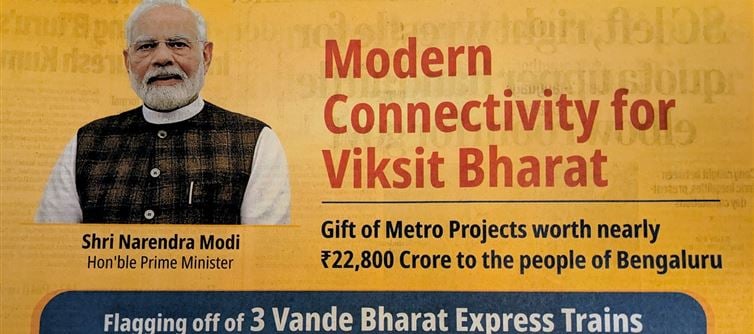 rail Corporation Limited, showcasing Modi’s involvement in flagging off three Vande Bharat Express trains, inaugurating the Bangalore Metro Yellow Line (R.V. Road to Bommasandra), and laying the foundation stone for Metro Phase-3. The