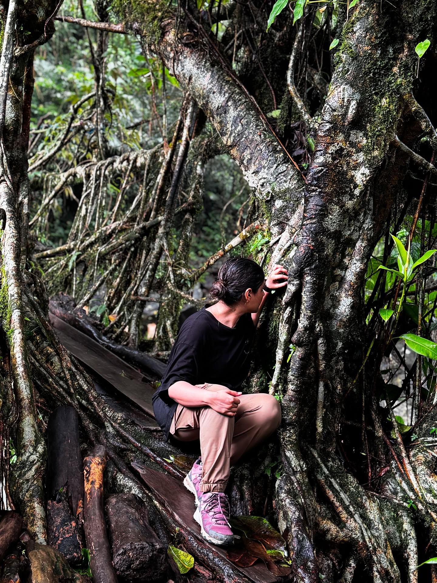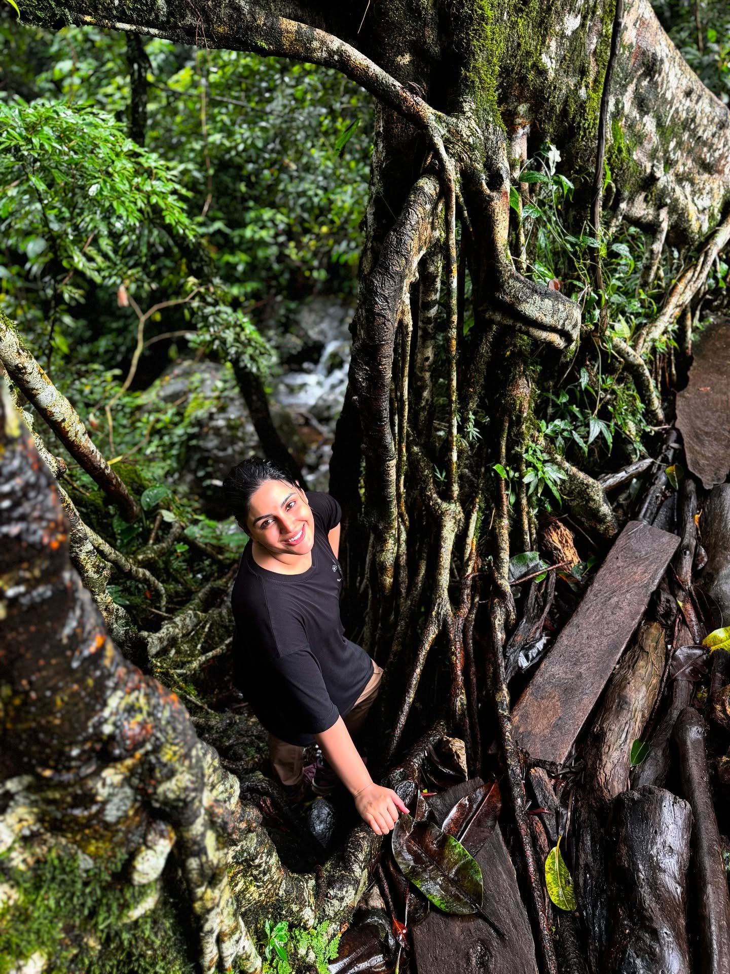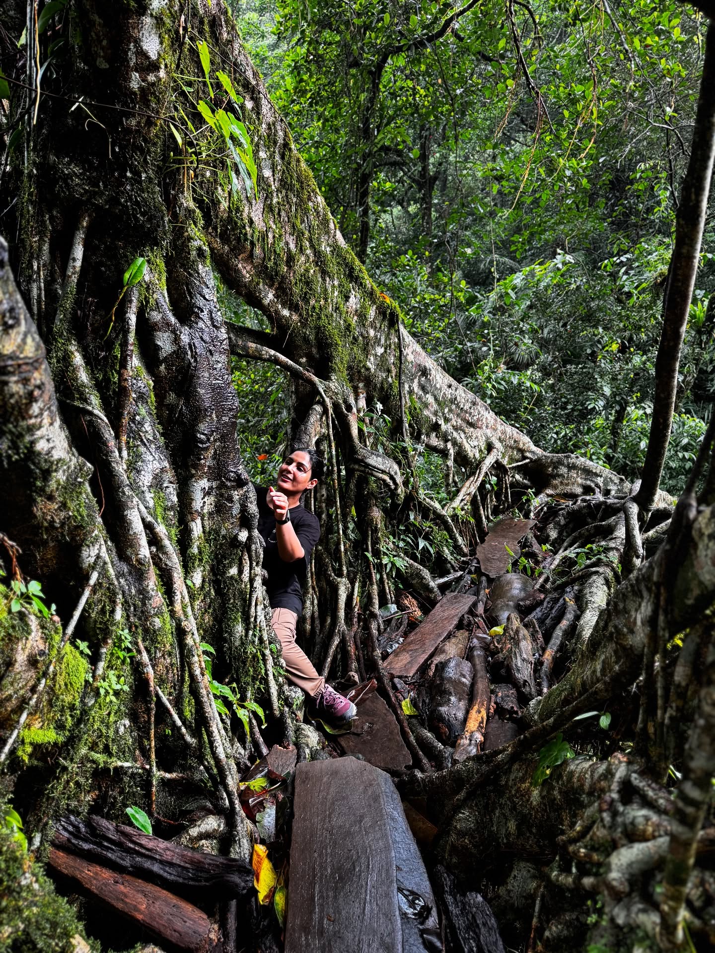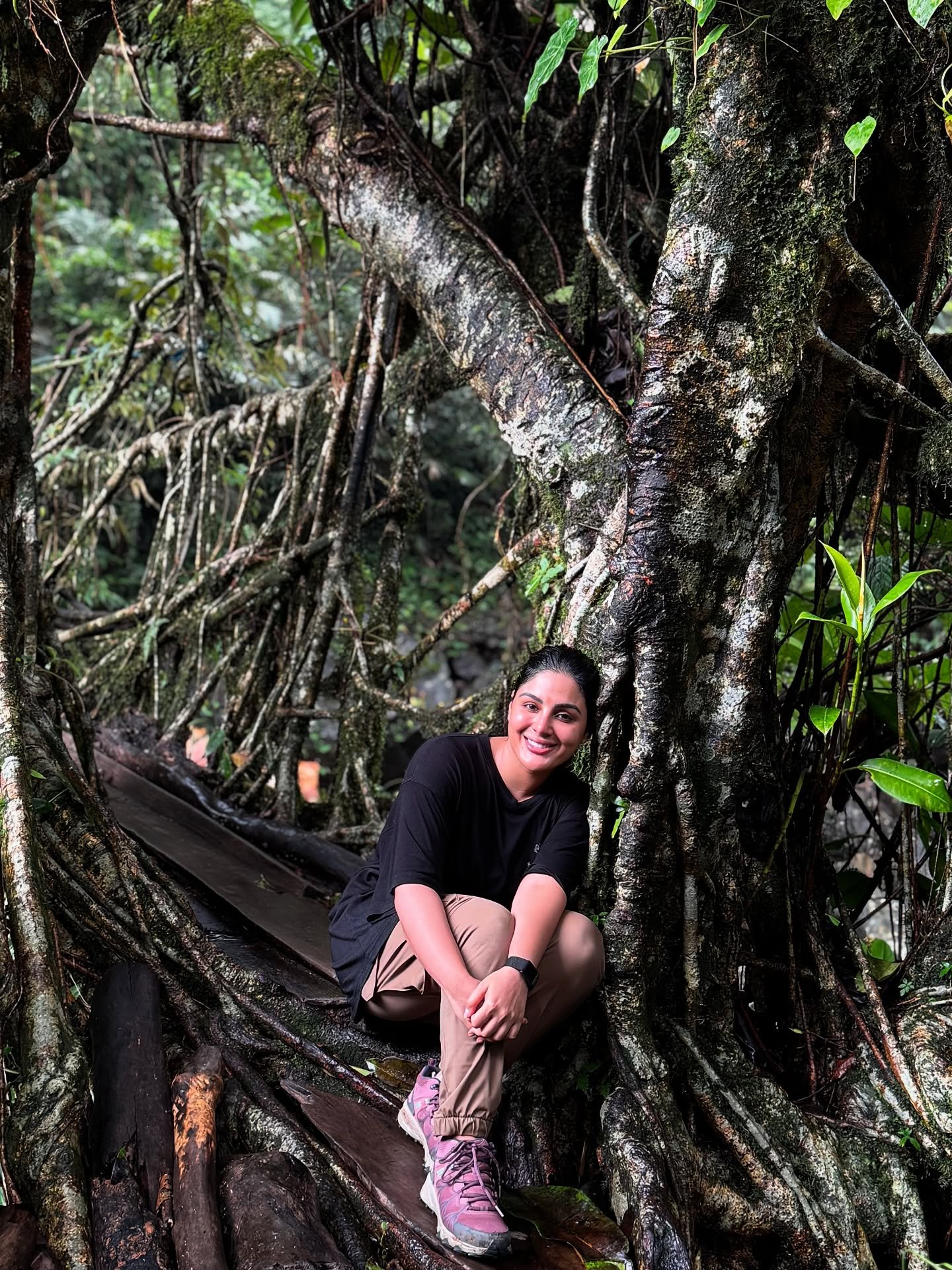 During her trek, Samyuktha explored the famous ‘Living Root Bridge,’ an extraordinary creation of nature where the tangled roots of trees form a natural walkway. While the forest radiated peace and freshness, the trek wasn’t without its risks, especially at a time when natural disasters and environmental concerns dominate the headlines. Many of her fans expressed their worry, but Samyuktha’s radiant smile and relaxed body language in the pictures conveyed how deeply she was enjoying every moment. Her comfort in the middle of the wilderness showed her adventurous side, as well as her ability to find serenity even in challenging landscapes.