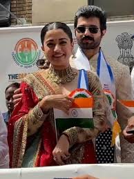 It is known that star hero and heroine Vijay Deverakonda and rashmika were recently seen in America. rashmika left first, and then Vijay arrived. Now they have made a splash together in New York. They attended the 43rd india Day Parade. Both were also honored as Grand Marshals in the parade. When the Federation of indian Associations organized the india Day Parade at New York's Times Square on the occasion of India's 79th Independence Day, Vijay and rashmika were a special attraction. They appeared to be very close and in a happy mood. They even walked holding each other's hands. Now that they are in America, the photos and videos related to that have gone viral on social media. The netizens and fans are sharing them and making them viral. In fact, it is known that the two of them have been in a relationship for a few months. They have been indirectly saying that they are in love from time to time. They have been seen going on vacations many times.