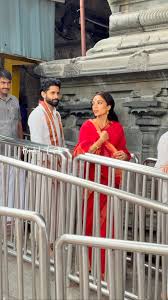 In that video, naga chaitanya is seen wearing silk clothes and looking traditional. Similarly, Shobhita also looks like a telugu girl in a red saree. Many are praising Shobhita's simplicity as she looks like a telugu girl with sindoor in her hair, a dot on her forehead, and bangles on her hands. Especially since the video of naga chaitanya and Shobhita standing in the queue together like ordinary devotees has gone viral, there is no ego in them, even though they are celebrities. Many are praising the couple, saying that they went for darshan like ordinary devotees.
