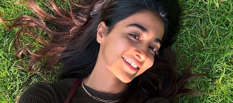 pooja hegde, known for her glamorous on-screen appearances, has once again captured attention with a refreshingly candid photograph. The actress is seen lying on a lush green lawn, exuding a natural and effortless charm. With minimal makeup, loose flowing hair, and a radiant smile,