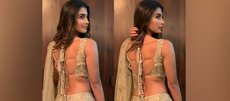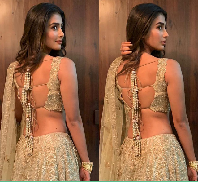 Pooja’s ability to carry such an ensemble with grace is what sets her apart in the world of fashion. The confidence with which she flaunts her sculpted back and the poise in her expressions make this look a memorable fashion statement. She manages to strike a balance between bold sensuality and traditional allure, creating an irresistible style that resonates with today’s generation while honoring timeless elegance.