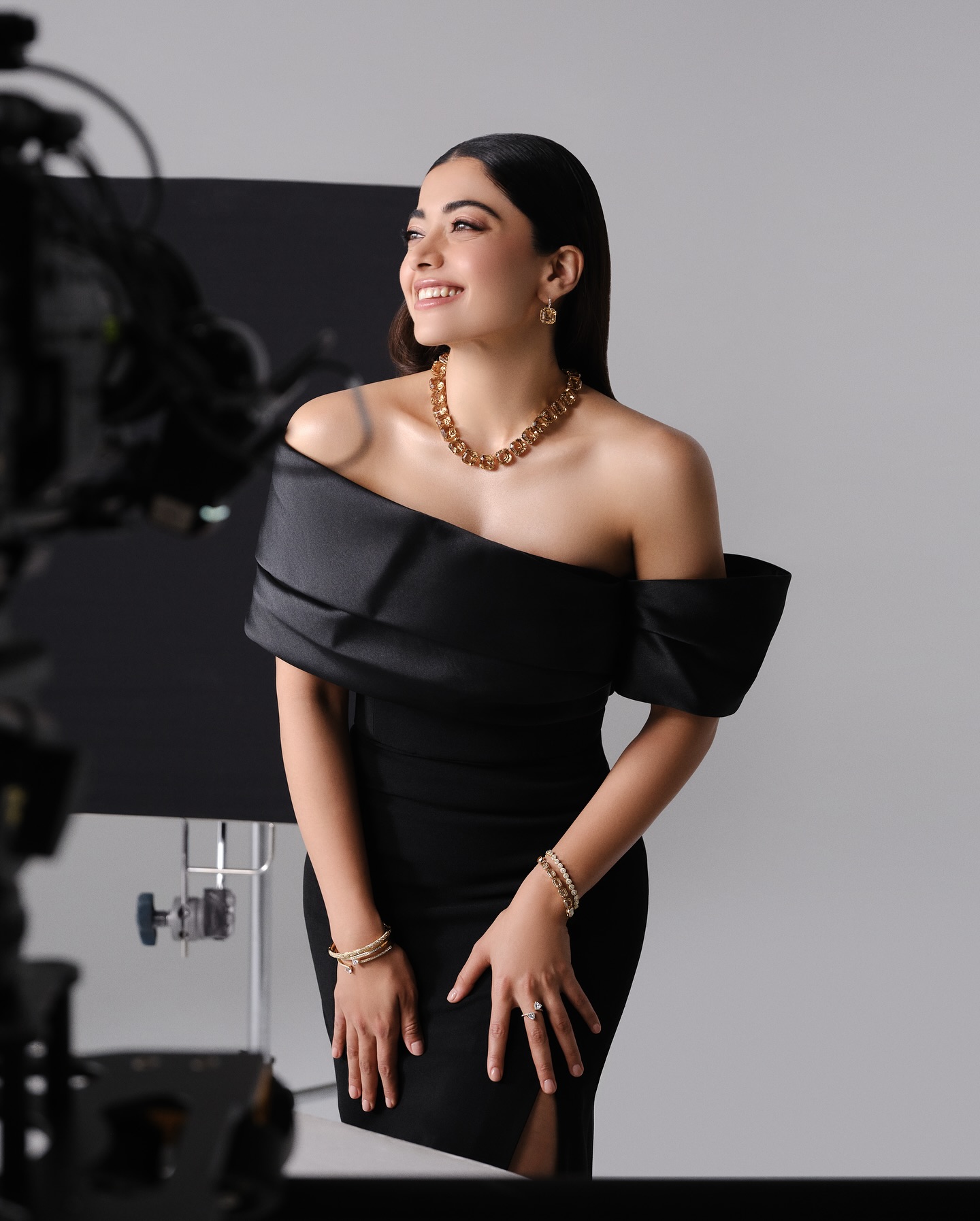 Rashmika Mandanna’s fans often call her a Swarovski diamond, and her latest look more than justifies the tag. Dressed in a stunning black off-shoulder dress, she exuded class and confidence. What truly elevated her style was the golden Swarovski diamond set — a necklace, earrings, and bracelets that sparkled with every movement. The mix of minimalism and grandeur made her look nothing short of royalty, with her radiant smile sealing the deal. This striking fashion moment is just another reminder of why rashmika is considered a style icon. She knows how to balance glamour with elegance, never going over the top yet always making a statement. Her natural grace gave the entire look a refreshing finish, proving once again that she doesn’t need extravagant styling to dazzle — her personality does most of the work. But it’s not just her fashion that has fans buzzing; her career graph is just as sparkling. rashmika recently wrapped up shooting for her much-anticipated telugu film Girlfriend, which is already creating massive curiosity among movie lovers. Known for her effortless screen presence and infectious energy, rashmika is expected to bring another memorable performance to the big screen. Meanwhile, she is also making waves in bollywood with Thama, produced by Maddock Films and starring Ayushmann Khurrana. Playing the character of Tadaka, she is set to showcase yet another side of her acting skills. Despite shuttling between shoots, promotions, and glamorous appearances, rashmika continues to maintain her status as one of the most versatile and admired actresses in indiancinema today — truly living up to her title of a Swarovski diamond.