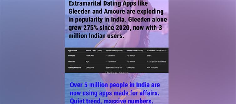Explosive Growth: Since 2018, platforms promoting extra-maritals have reported double-digit growth in indian metros, signaling a cultural shift.