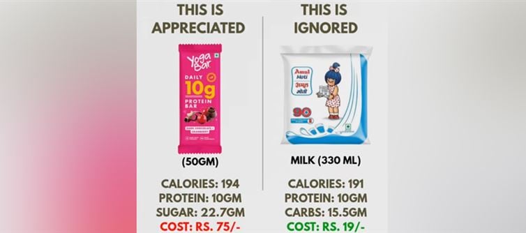 Insight: The tweet highlights a mindset shift—marketing can make a product like a protein bar seem superior, but milk offers similar protein with fewer bells and whistles. This comparison encourages us to rethink our choices and appreciate the value of natural foods over branded alternatives.