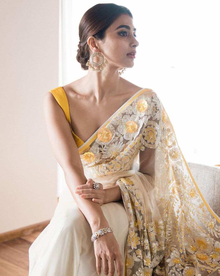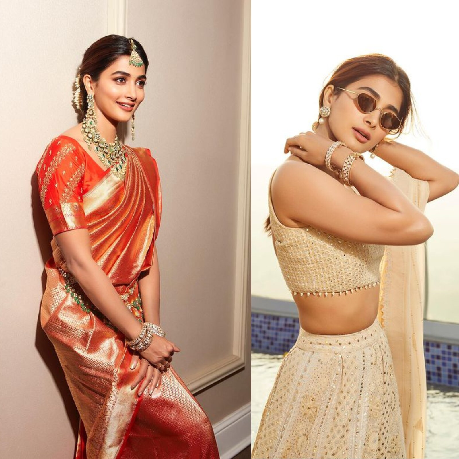 From red carpets to festive events, Pooja Hegde has always been a showstopper when it comes to sarees. But what truly sets her apart is her bold and stylish blouse choices that elevate every look. Here’s a rundown of her most striking saree blouse designs: