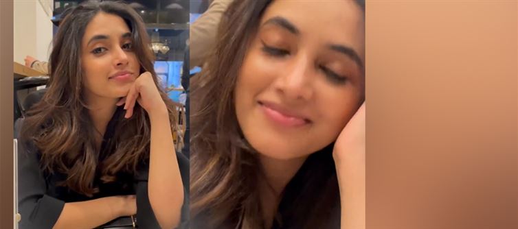 Her lush, wavy locks frame her face in cascading layers, adding an unspoken depth to the image. The subtle bounce of her hair, paired with her minimal styling in a timeless black outfit, enhances the natural glow of her skin and the unfiltered charm of her personality. There’s no glitter, no grand setup — yet the picture breathes glamour in its purest form.