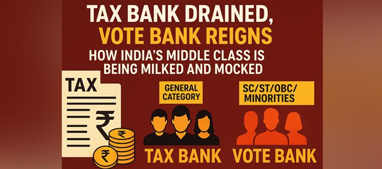 Every election season, one truth glares us in the face — India’s so-called “tax bank” and “vote bank” are not the same. The general category, which contributes the lion’s share of India’s direct taxes, finds itself reduced to little more than a cash cow. Meanwhile, SC/ST/OBC/Minorities are courted as a dependable vote bank, with promises of freebies, reservations, and schemes rolled out like festival discounts.