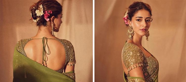 ananya paired the saree with oversized jhumkas and a simple high bun. The result? A traditional look that oozed sophistication while keeping it festive-ready. She proved that sometimes, less is truly more.