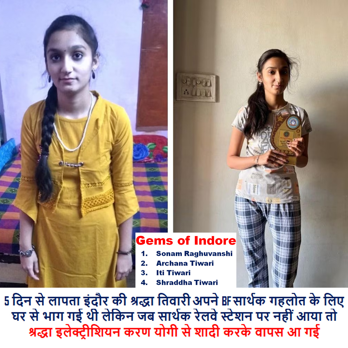 The bizarre case of Shraddha Tiwari from Indore is not just another “missing girl found” story—it’s a mirror to the impulsive, reckless, and often laughable decisions today’s Gen Z takes in the name of “love” and “freedom.” Missing for five days, Shraddha shocked everyone when she revealed she had left home to elope with boyfriend Sarthak Gehlot. But when Sarthak didn’t show up at the railway station, she ditched the plan and instead ran off with Karan Yogi, marrying him in a temple.