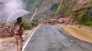All vehicles traveling along the highway have been stopped at secure points to prevent accidents amid ongoing landslide threats.