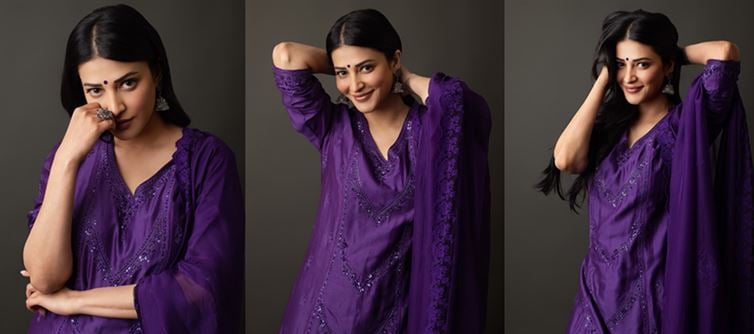 🔥 Verdict: shruti haasan in this purple ensemble is a masterclass in how to keep ethnic wear minimal yet magical!