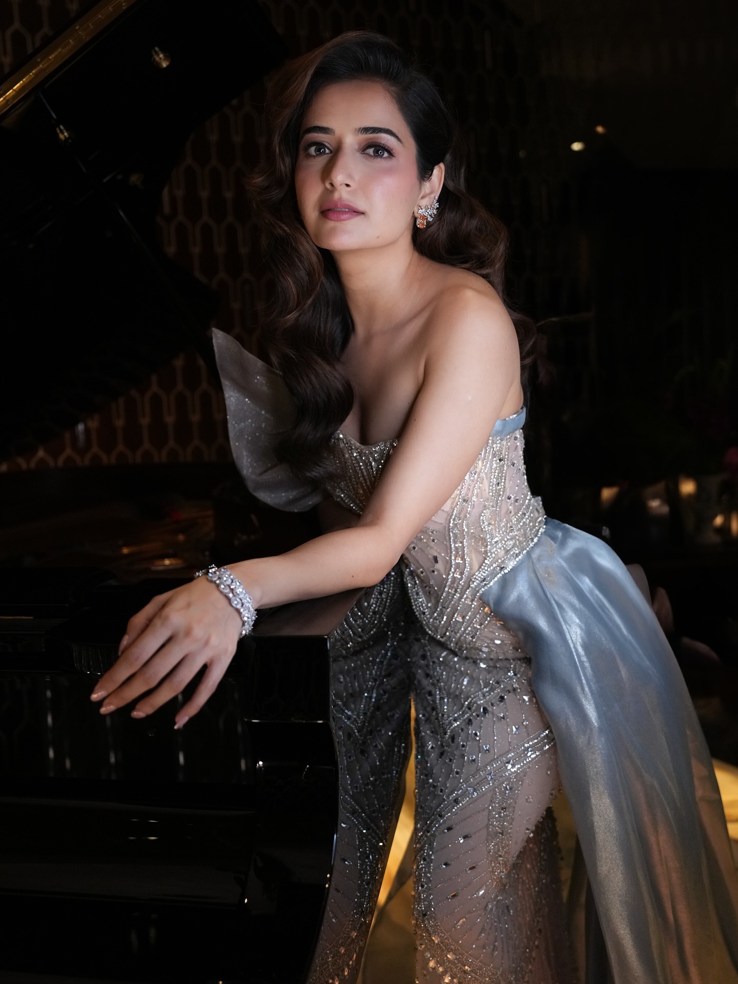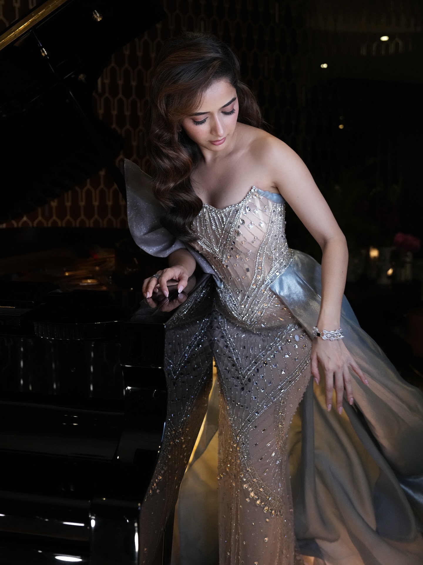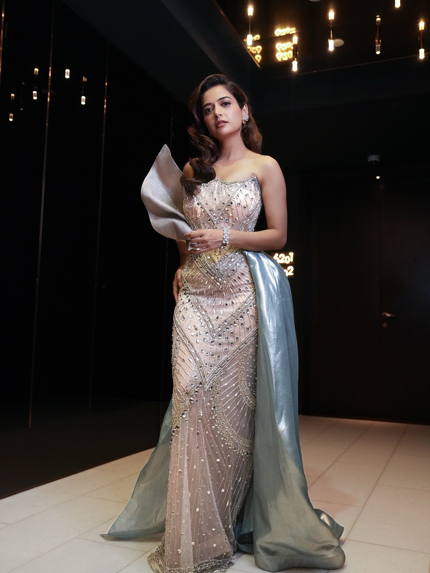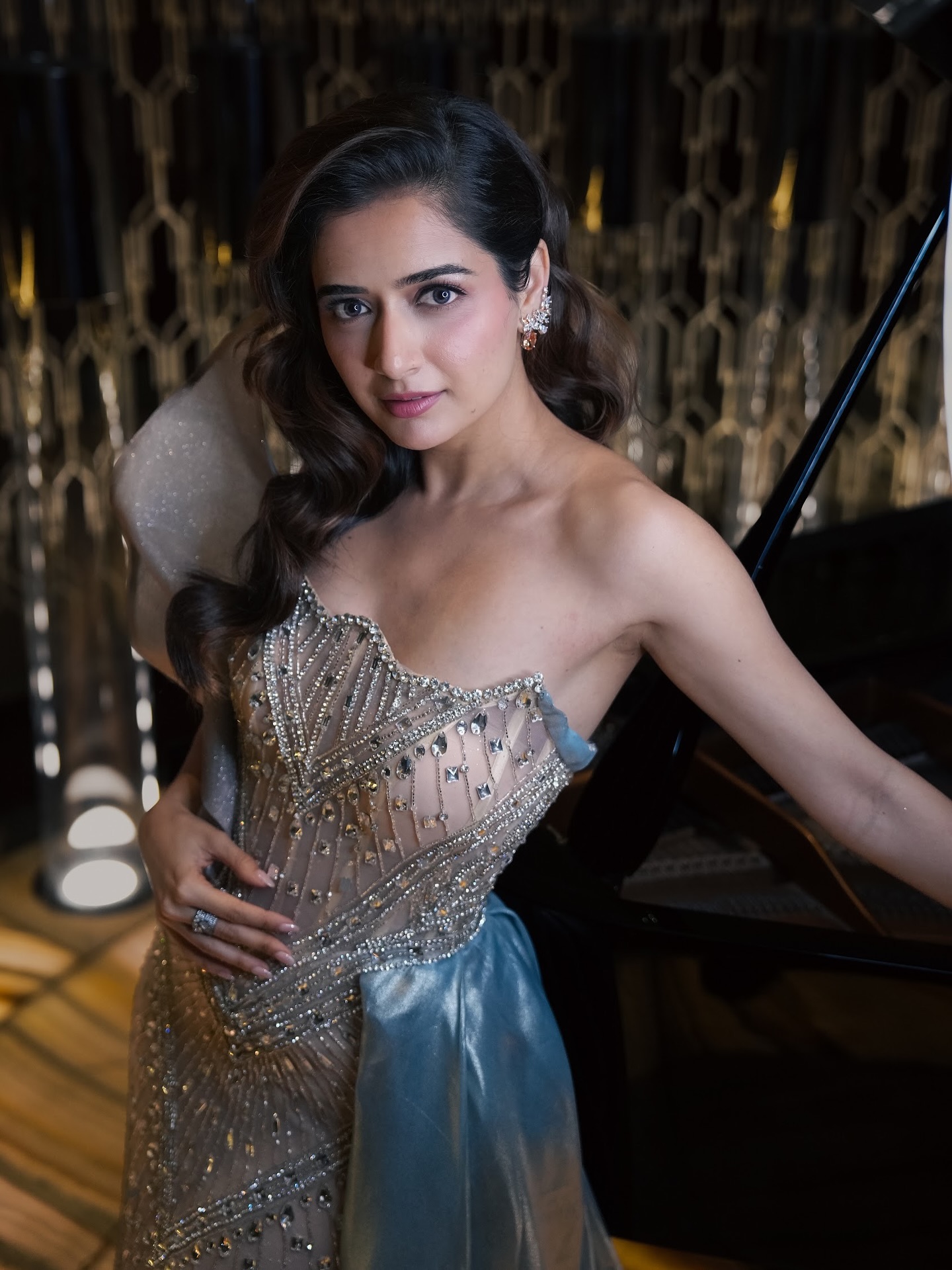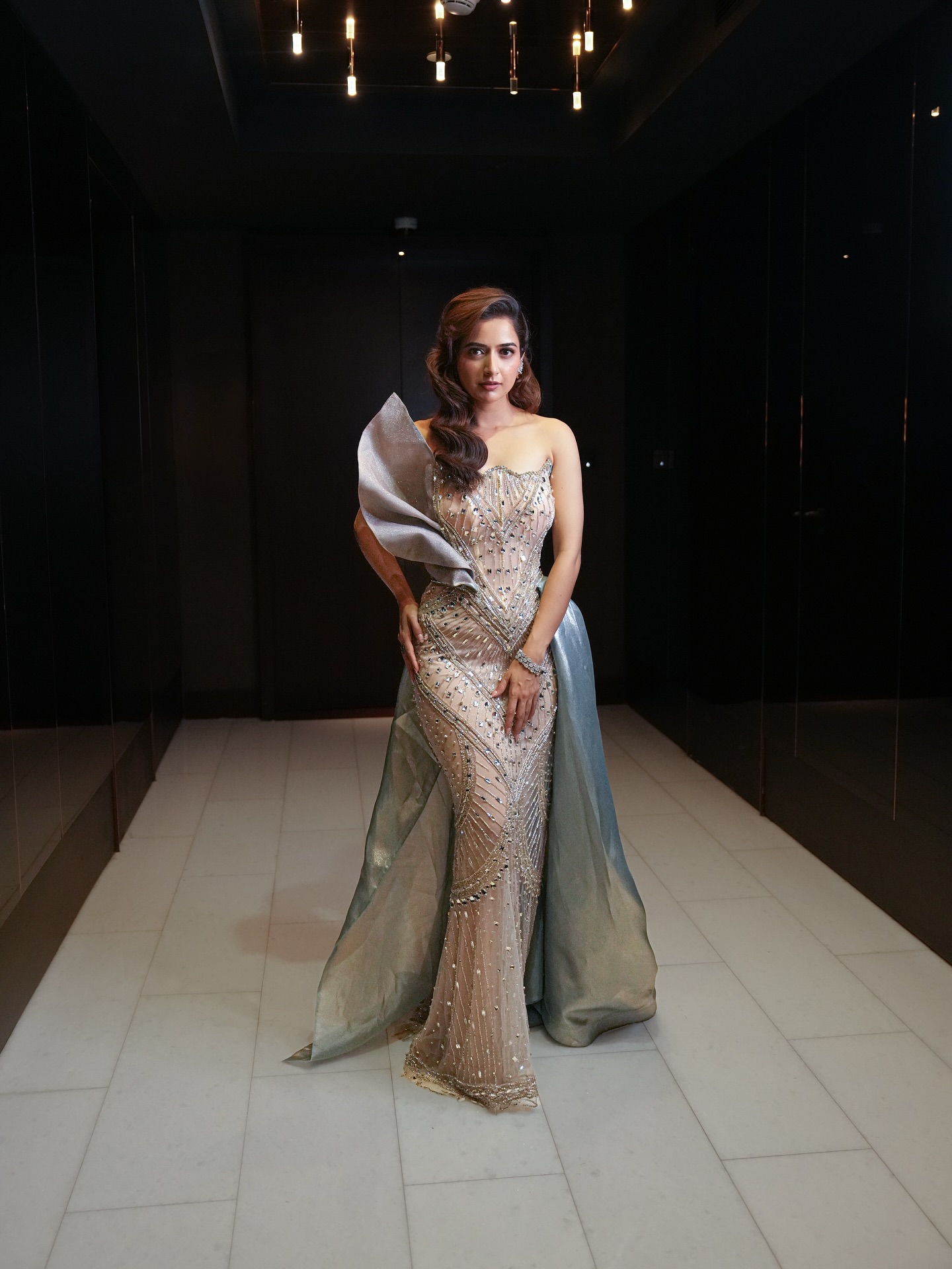 The gown’s shimmering metallic fabric isn’t just fashion — it’s a mirror of Ashika’s rising star power across three industries. It reflects her boldness and ambition with effortless style.