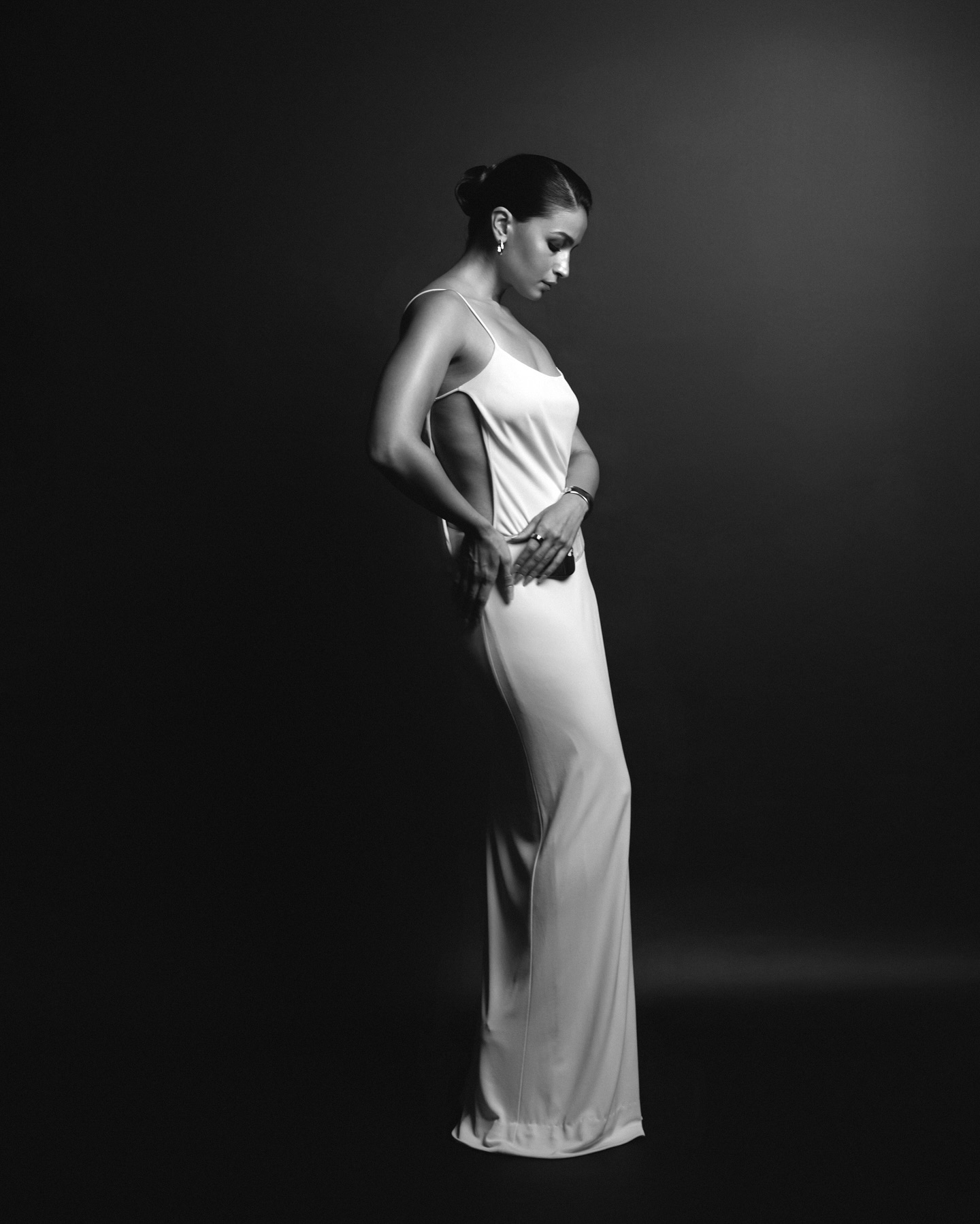 Her hair was neatly tied back, keeping the focus on her glowing skin and poised expression. Sometimes less really is more.
