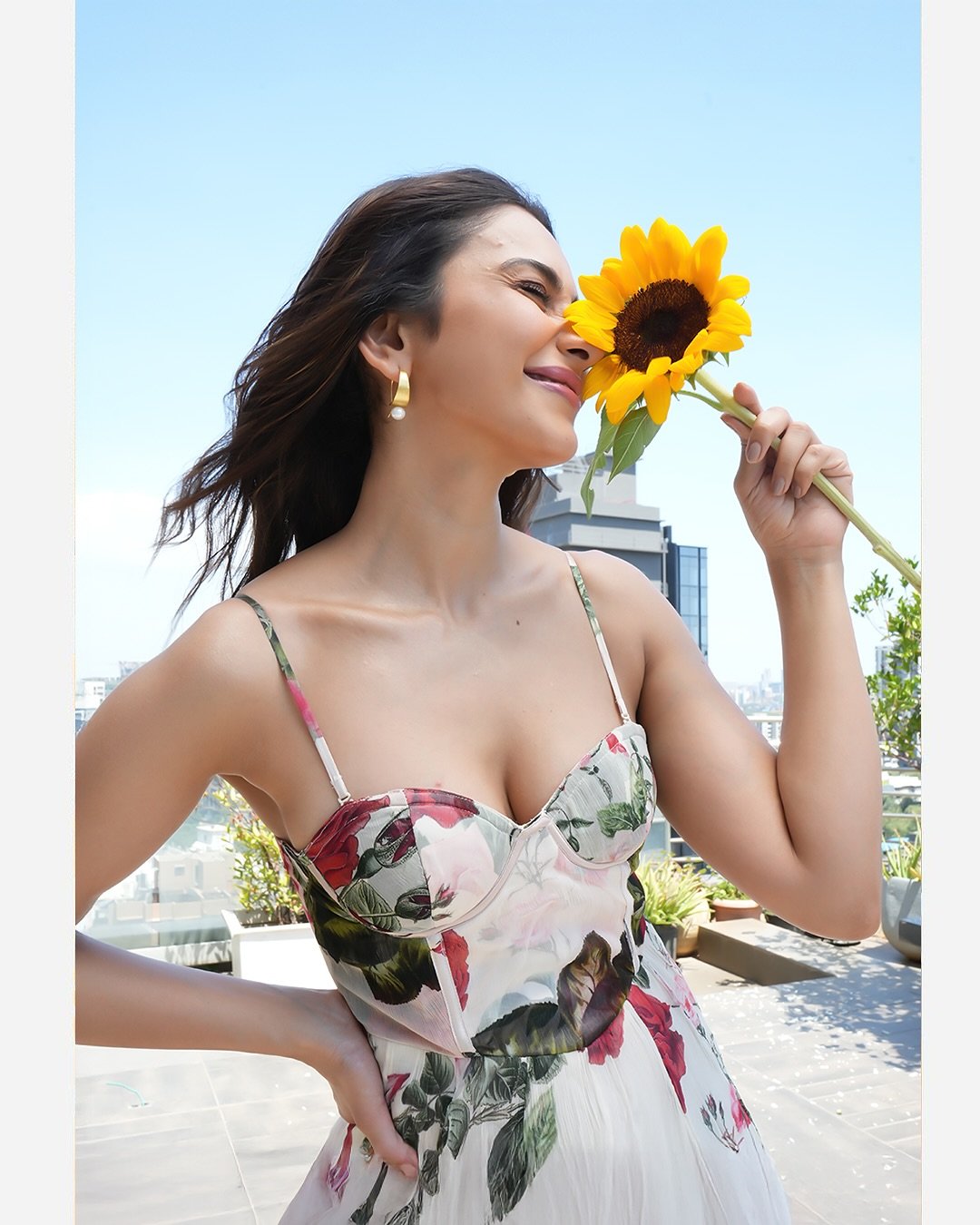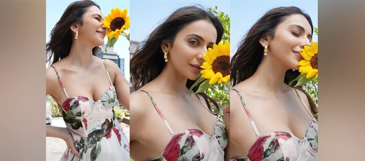 While most would pair diamonds, rakul picked nature. The sunflower turned a sultry look into something mischievous, fresh, and unforgettable.
