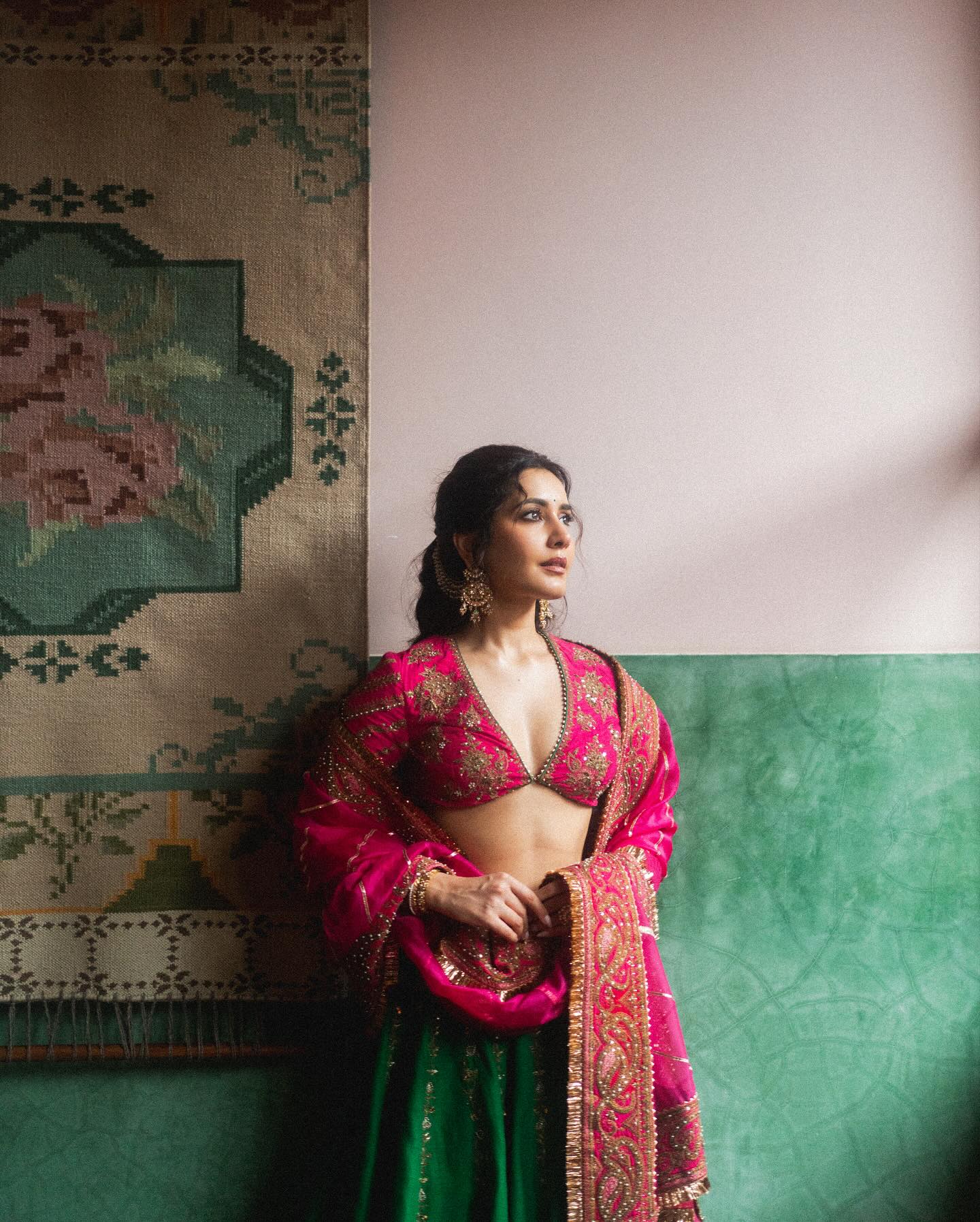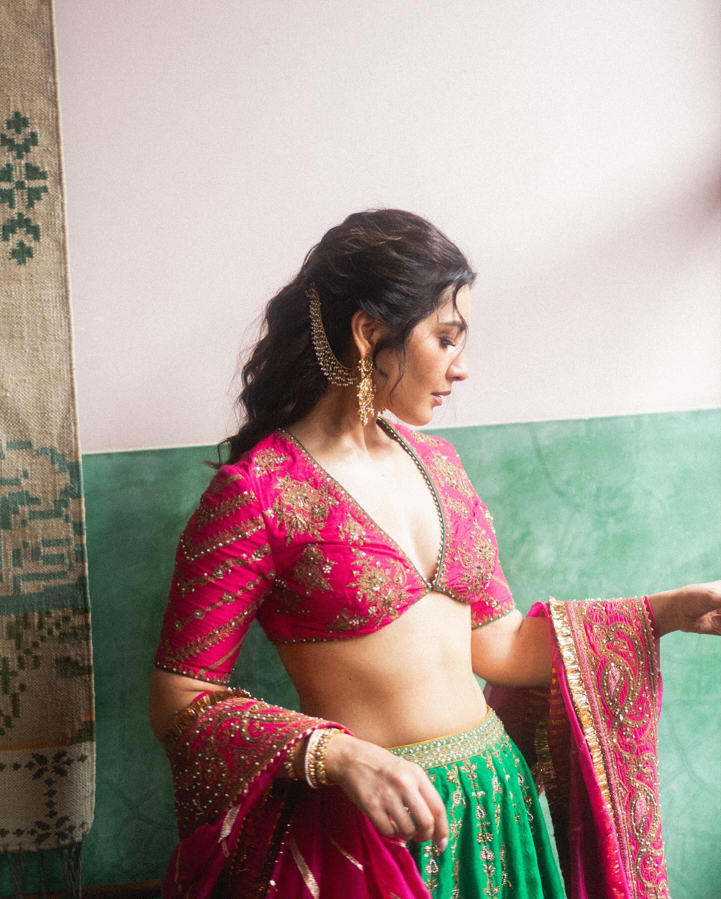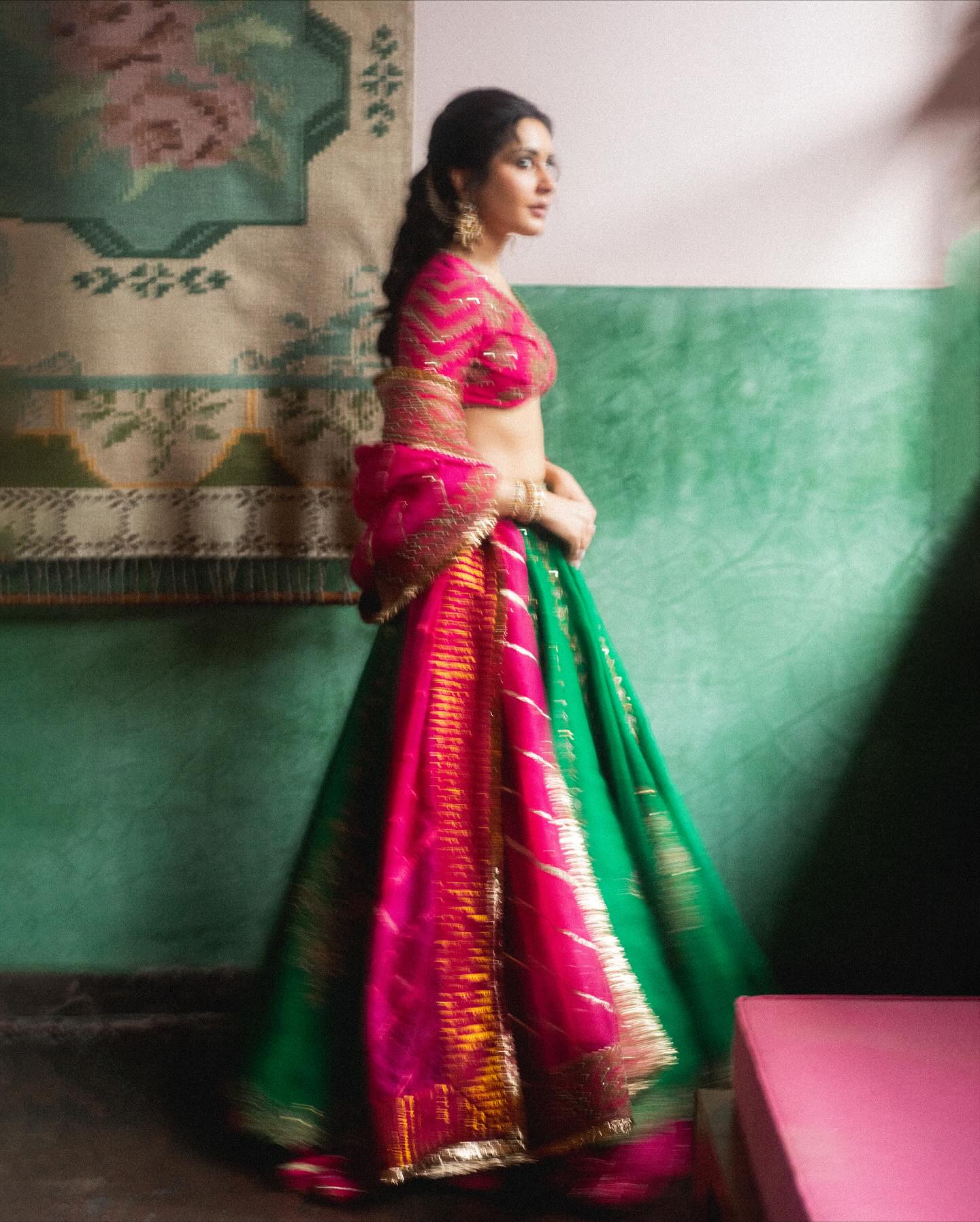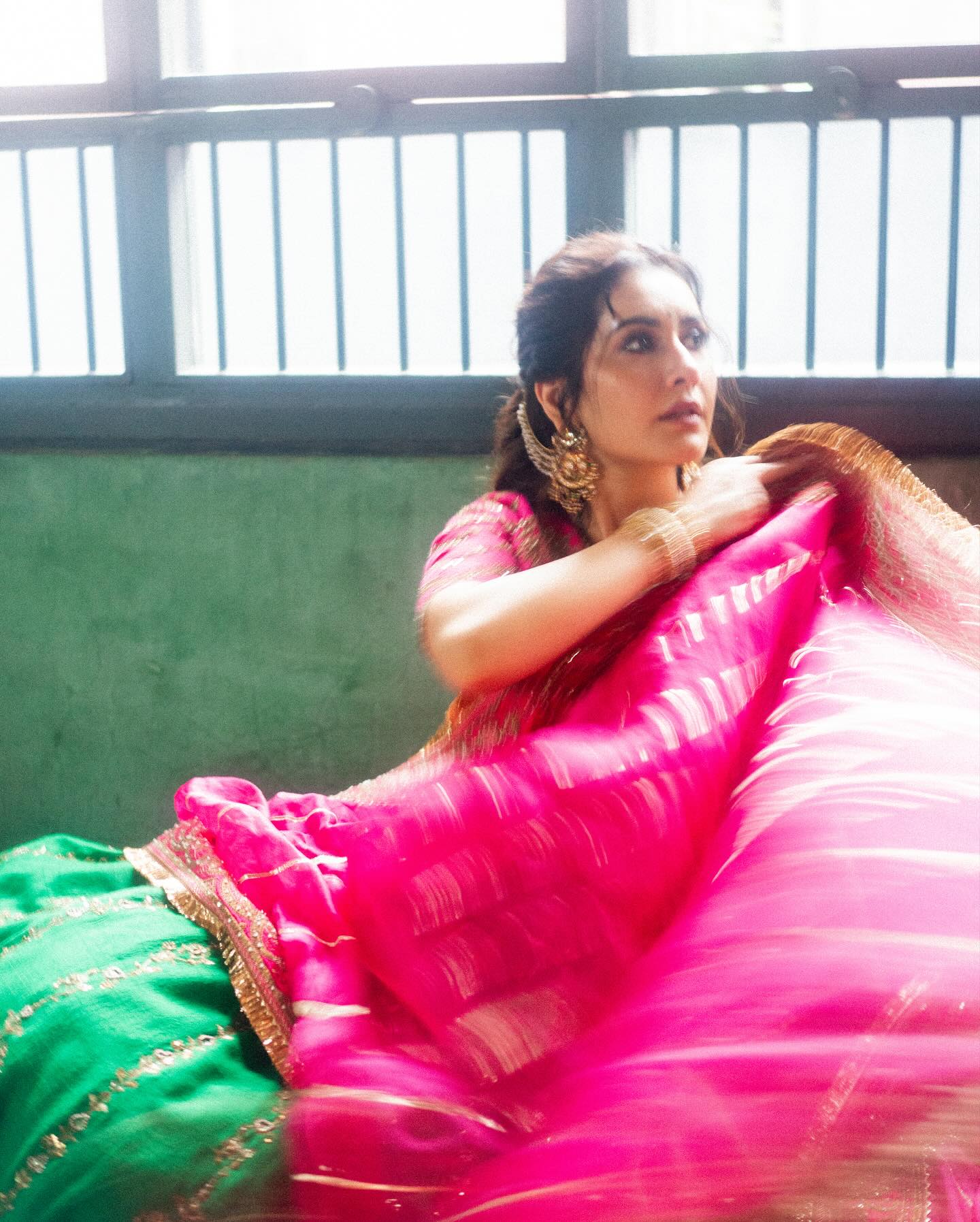 Some people have balconies; Raashi Khanna has a stage, a frame, and a runway all in one. Sunlight caresses her skin, the wind plays with her dupatta, and suddenly, a simple architectural corner becomes a canvas for bold, sensual, and regal fashion. This isn’t just a photoshoot—it’s a masterclass in turning tradition into statement-making glamour.