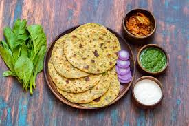 Unlike regular stuffed parathas, this one is bursting with bold flavors. The star ingredient is thecha — a spicy chutney made from green chilies, garlic, peanuts, and a dash of oil. Add cheese to balance the heat, and you get a paratha that’s creamy, spicy, and utterly addictive.