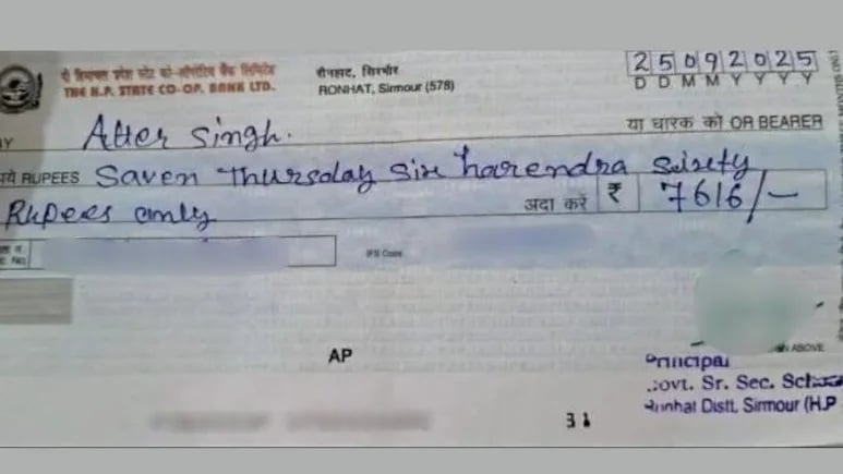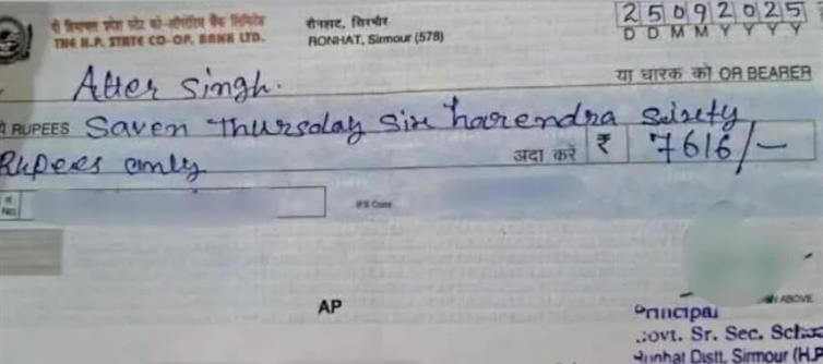 It wasn’t just a cheque that bounced — it was the last shred of faith in India’s government school system. A himachal pradesh school principal has gone viral after issuing a cheque so riddled with spelling errors that even a fifth-grader would cringe. Instead of seven, he wrote saven. Instead of a thousand, he confidently penned Thursday. And a hundred magically became harendra.