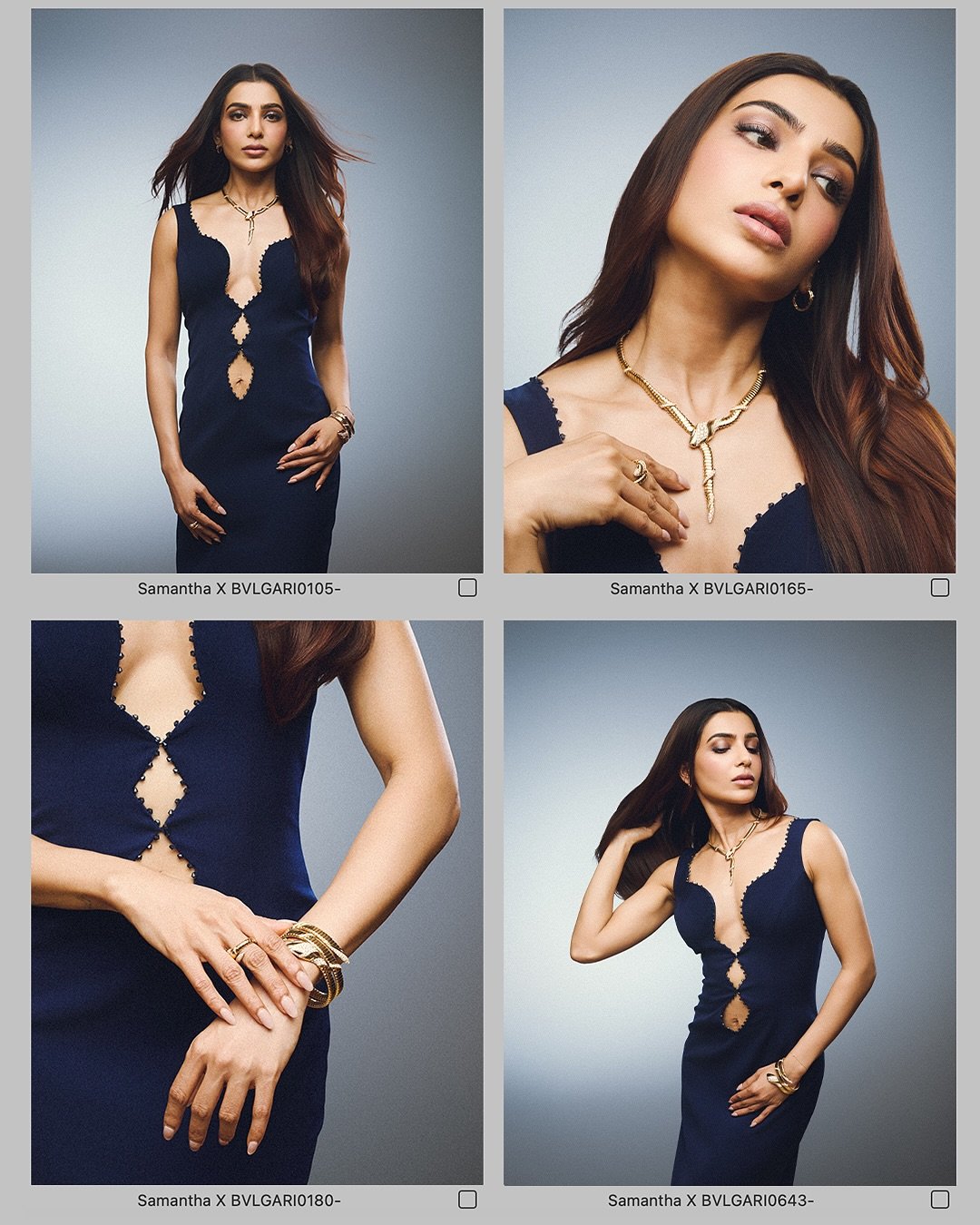 samantha Ruth Prabhu has always commanded attention, but at the Bvlgari event in Mumbai, she proved that powerful style doesn’t always shout. Draped in a striking navy gown, samantha allowed the silhouette, cut-outs, and deep neckline to speak volumes, making every glance linger.