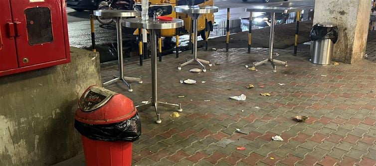 On either side, there are dustbins. Bright, visible, empty. Yet the garbage lies scattered at their feet, like an insult carved into the concrete. It’s not the absence of infrastructure—it’s the absence of basic decency.