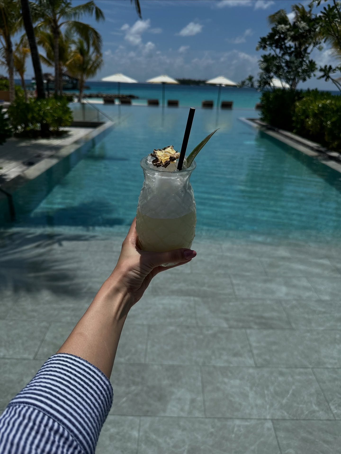 Amyra’s black-and-white monokini is both striking and refined. The zebra lines contrast beautifully against the calm, azure waters, creating a visual that is wild yet controlled—a perfect summer statement piece.