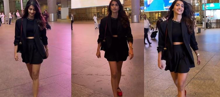 Finally, her signature tousled waves and glowing smile add the perfect human touch, softening the structured outfit and elevating it from airport-ready to style-icon material. pooja proves that personality is the ultimate accessory.