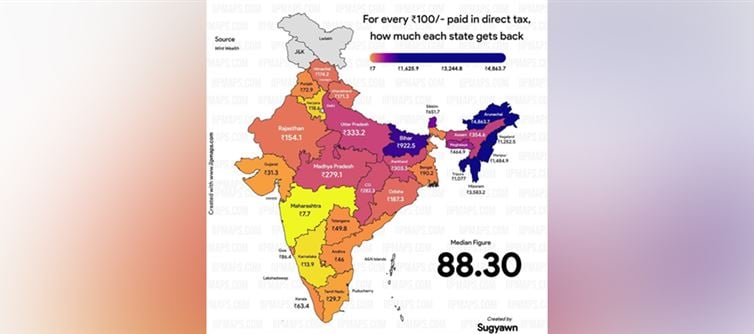 The Wint Wealth map exposes a shocking imbalance — small Northeastern states get thousands per ₹100 contributed, while karnataka gets punished for being productive. India’s redistribution model has turned into a reverse Robin Hood system — robbing the rich states to fund political optics elsewhere.