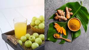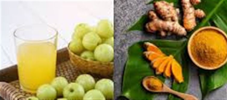 Mix 20–30 ml of fresh amla juice with a pinch of turmeric powder (or a few drops of fresh turmeric juice) in warm water. Drink it on an empty stomach and wait at least 30 minutes before eating.