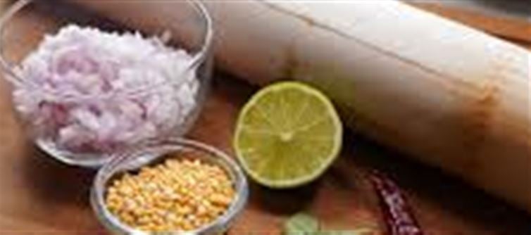 Prepare banana Stem: Peel the outer layers and remove the hard core of the banana stem. Slice the tender inner part into thin pieces. Soak in water with a little turmeric and lemon juice to prevent discoloration.